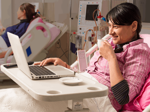 Tesisimizde 4 adet diyaliz salonumuz, hastalarımız konforlu bir tedavi ortamında diledikleri zaman internete bağlanabildikleri bir şekilde tedavi görür